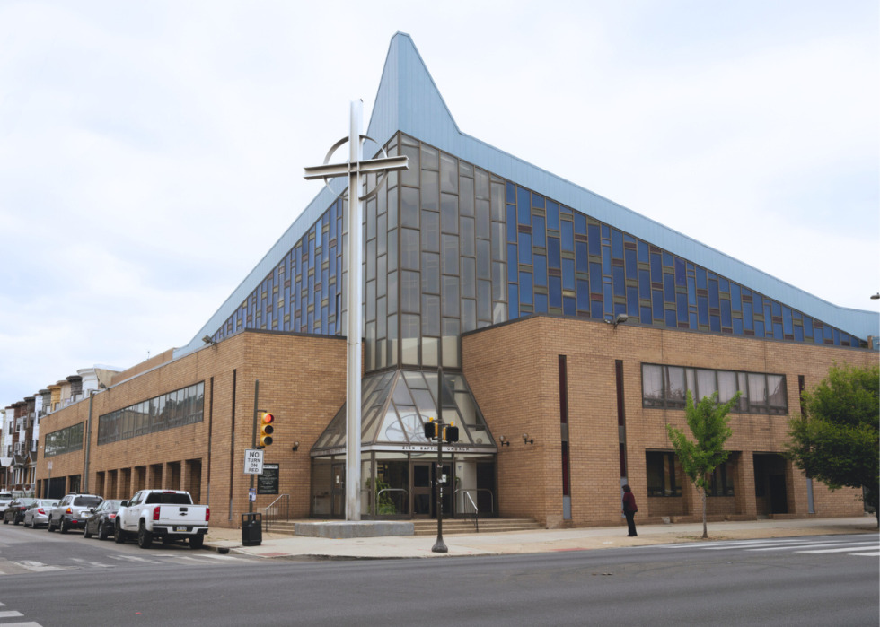 In the 1970s, Livingston designed the Zion Baptist Church, which features colorful glass panels and an abstracted steeple that mirrors the tower of the educational building across the street. Comprised primarily of brick and glass on the outside, the church feels expansive and light, even inside, due to its clerestory walls, which allow generous sunlight to filter in.