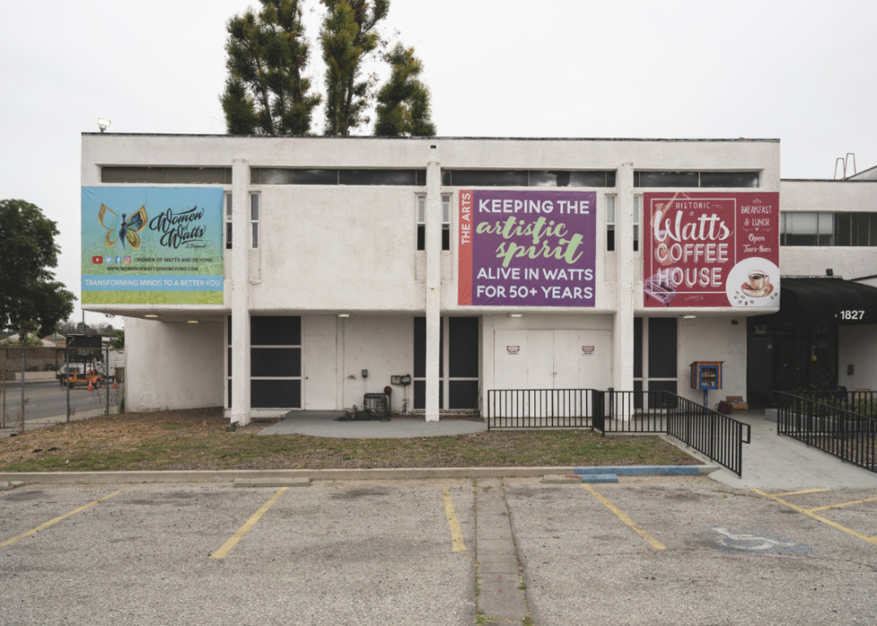 Restrained in its design, the Watts Happening Cultural Center has served as a gathering spot for Black artists, musicians, and other creatives who helped reinvigorate the community after the Watts Uprising in 1965. Simple white walls and a structure supported by pillars echo the minimalist tenets of modernism, while a courtyard serves as a dining area and community space for the Watts Coffee House, making the most of the region’s generally warm climate.